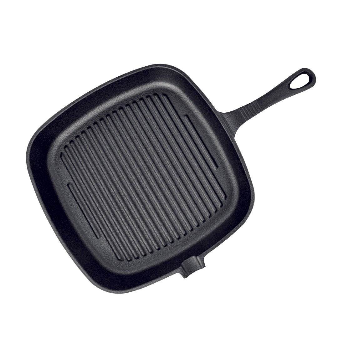 SOGA 23.5cm Square Ribbed Cast Iron Frying Pan Skillet Steak Sizzle Platter with Handle | Outdoorium