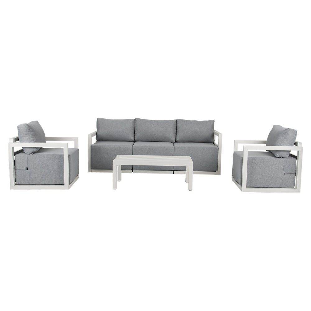 Relax into this deep-seated comfort outdoor set. Features a aluminium frame crafted to perfection creating a sleek and clean look with a modern flare.