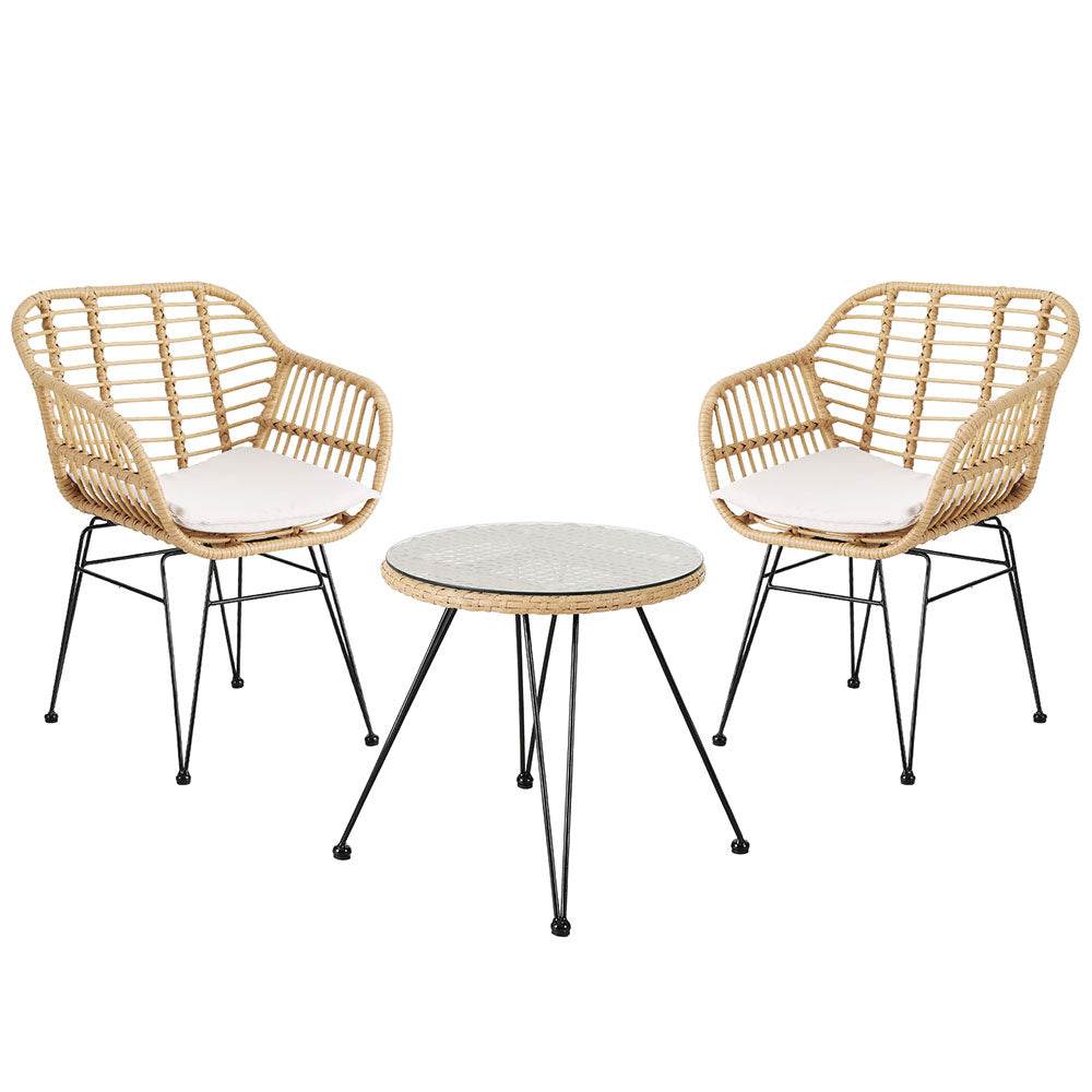 Enjoy the outdoors with the Gardeon Bistro Set. This elegant set features a sturdy steel frame with a durable, weather-resistant powder coating. Non-slip feet ensure stability, while the smooth surface allows for easy cleaning. Cushion covers are removable and washable. Assembly is simple, making it perfect for any patio or garden.