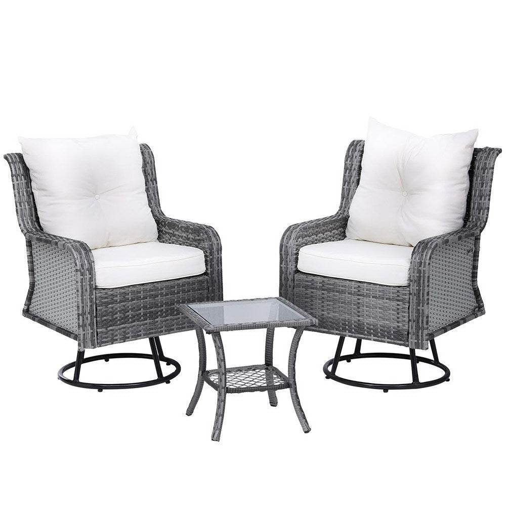 Say goodbye to uncomfortable outdoor furniture and say hello to Gardeon swivel outdoor furniture set. With this furniture set, you can create a relaxed outdoor setting easily that makes a perfect spot for peaceful reading or just unwinding on sunny afternoons with your partner. This outdoor swivel furniture set comprises of two swivel chairs and a side table. Its weather-resistant and UV-resistant design makes it suitable for both indoor and outdoor use. The outdoor swivel furniture set is crafted from durable PE wicker with heavy-duty powder-coated steel frame for ultimate sturdiness. Its meticulously woven PE wicker ensures it lasts long and looks desirable. The two chairs come with 360˚ swivel mechanism, which enables you to face any direction easily, and the soft cushioned seat makes it utterly comfortable to sit for a longer time without experiencing any pain or discomfort. The cushions have removable covers for easy cleaning and washing, and the UV-resistant properties prevents the cushion cover colour from fading. Furthermore, the side table has 5mm thick tempered glass top for durability and strength. Bring home our Gardeon swivel outdoor furniture set for your space today. This versatile swivel furniture set can be styled in multiple ways. So put on your creative hat and start styling.