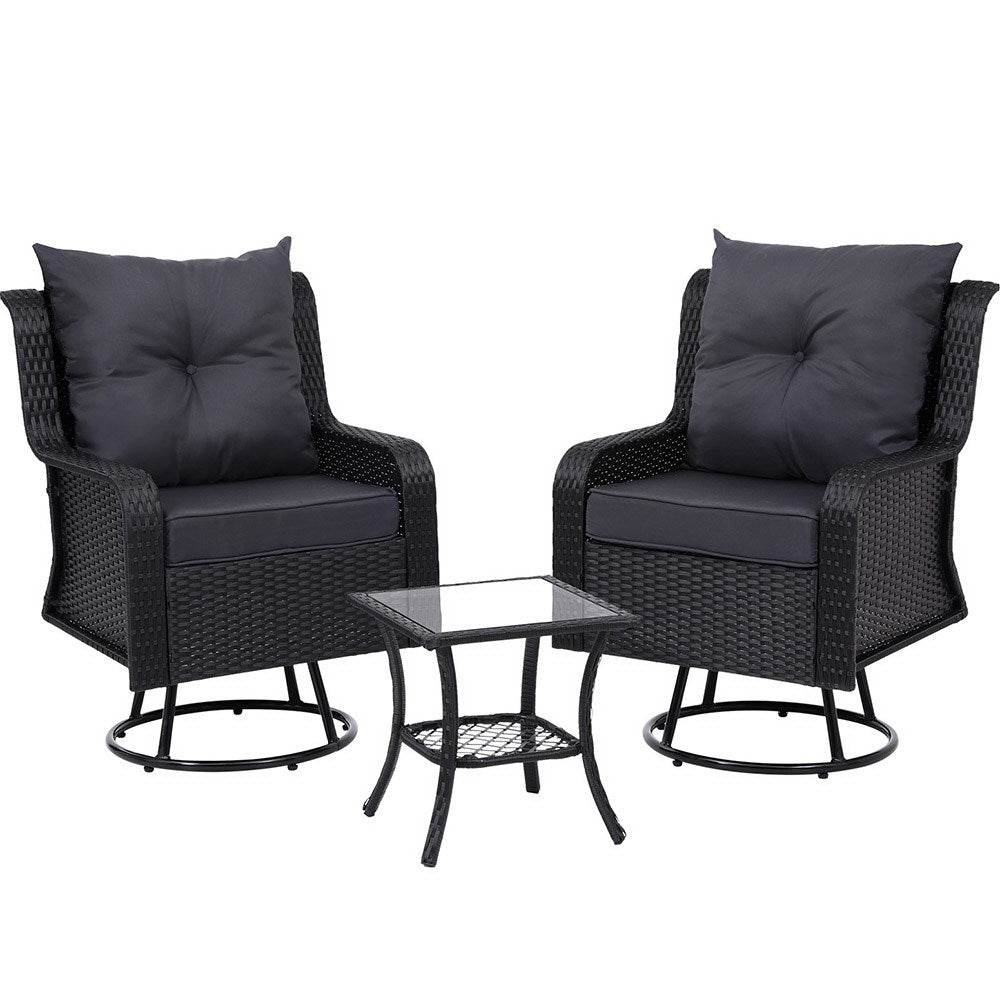 Say goodbye to uncomfortable outdoor furniture and say hello to Gardeon swivel outdoor furniture set. With this furniture set, you can create a relaxed outdoor setting easily that makes a perfect spot for peaceful reading or just unwinding on sunny afternoons with your partner. This outdoor swivel furniture set comprises of two swivel chairs and a side table. Its weather-resistant and UV-resistant design makes it suitable for both indoor and outdoor use. The outdoor swivel furniture set is crafted from durable PE wicker with heavy-duty powder-coated steel frame for ultimate sturdiness. Its meticulously woven PE wicker ensures it lasts long and looks desirable. The two chairs come with 360? swivel mechanism, which enables you to face any direction easily, and the soft cushioned seat makes it utterly comfortable to sit for a longer time without experiencing any pain or discomfort. The cushions have removable covers for easy cleaning and washing, and the UV-resistant properties prevents the cushion cover colour from fading. Furthermore, the side table has 5mm thick tempered glass top for durability and strength. Bring home our Gardeon swivel outdoor furniture set for your space today. This versatile swivel furniture set can be styled in multiple ways. So put on your creative hat and start styling.