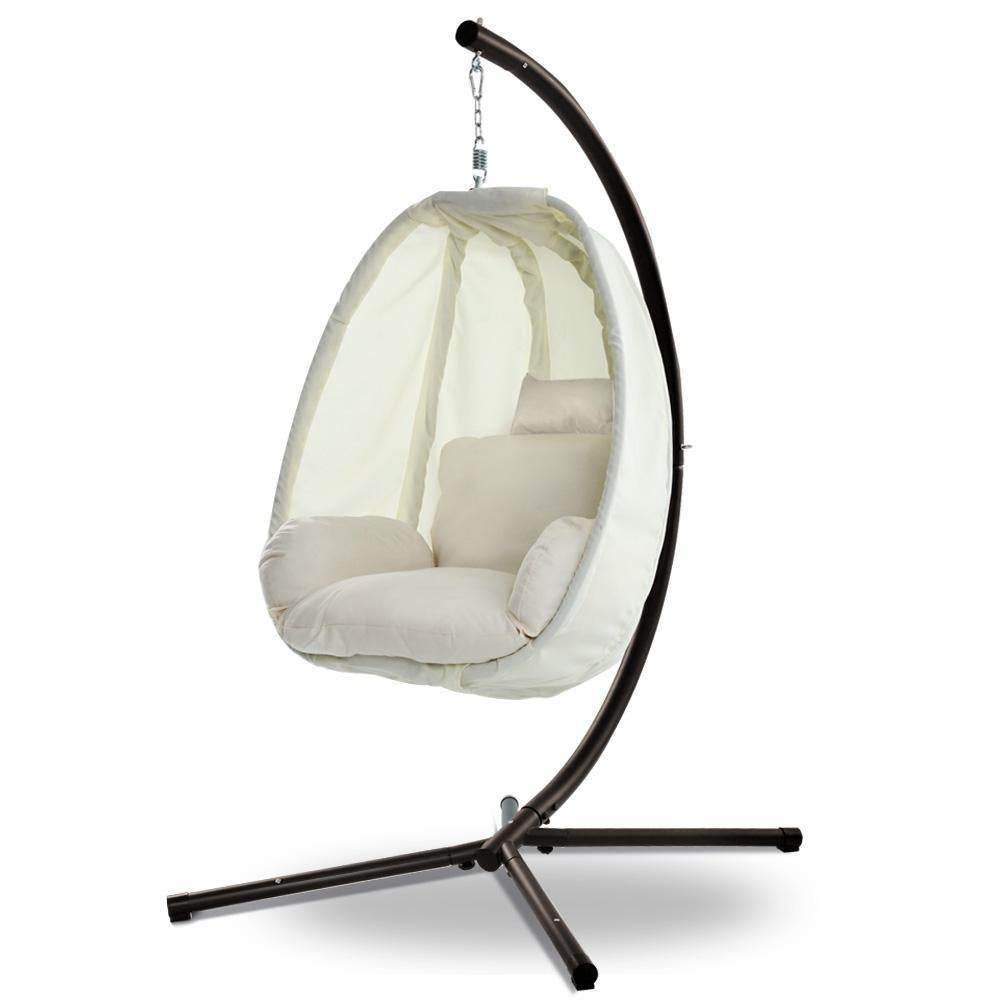 Gardeon Outdoor Egg Swing Chair Patio Furniture Pod Stand Canopy Foldable Cream | Home & Garden > Hammocks
