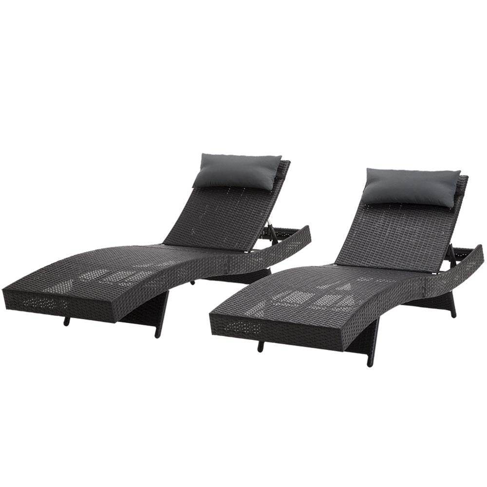 Gardeon 2PC Sun Lounge Wicker Lounger Outdoor Furniture Beach Chair Garden Adjustable Black | Furniture > Outdoor