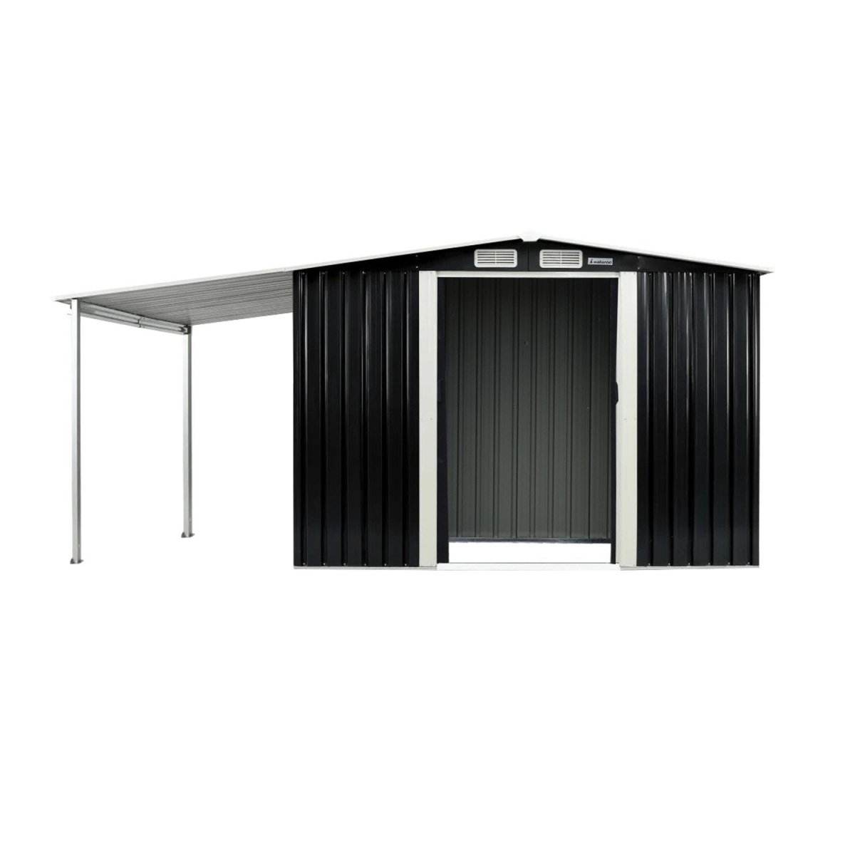 Wallaroo 10x8ft Zinc Steel Garden Shed with Open Storage - Black | Home & Garden > Storage